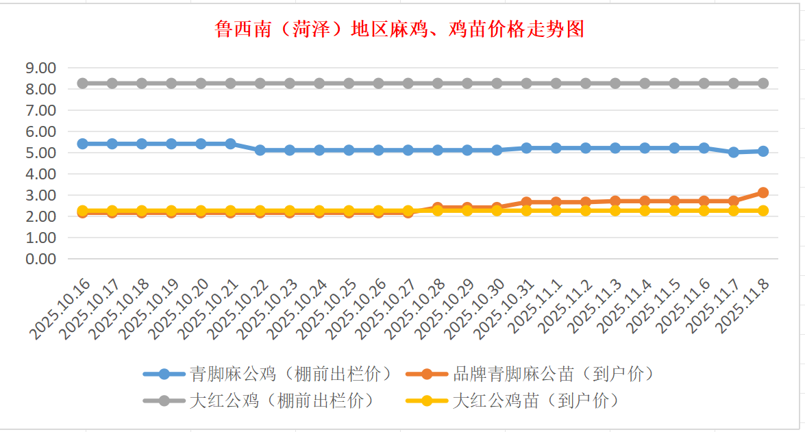 菏泽地区麻鸡、鸡苗价格走势图(来源:鸡病专业网)