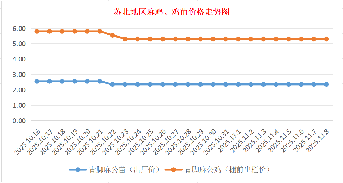 苏北地区麻鸡、鸡苗价格走势图(图源:鸡病专业网)