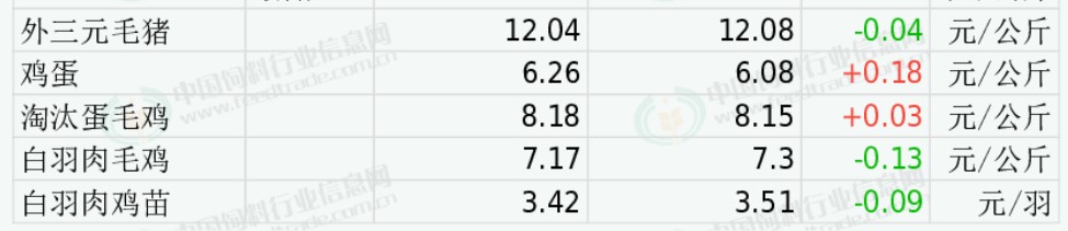 白羽肉毛鸡价格下跌。市场鸡源增加,需求平稳,经销商补货积极性稍有下降,预计近期肉鸡价格窄幅震荡。今日主产区山东白羽肉毛鸡均价6.90元/公斤,与昨日价格下跌0.10;辽宁均价7.18元/公斤,与昨日价格下跌0.10;主销区江苏均价7.80元/公斤,与昨日价格下跌0.26。
