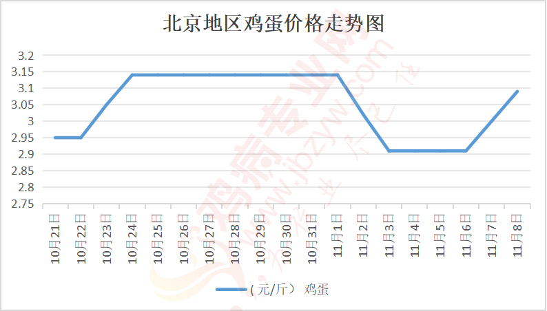 鸡病专业网消息:11月8日,北京大洋路鸡蛋主流批发价格136-137元/44斤,涨,到货6台,成交灵活,走货一般;回龙观鸡蛋136元/44斤,涨;顺义石门鸡蛋136元/44斤,涨。