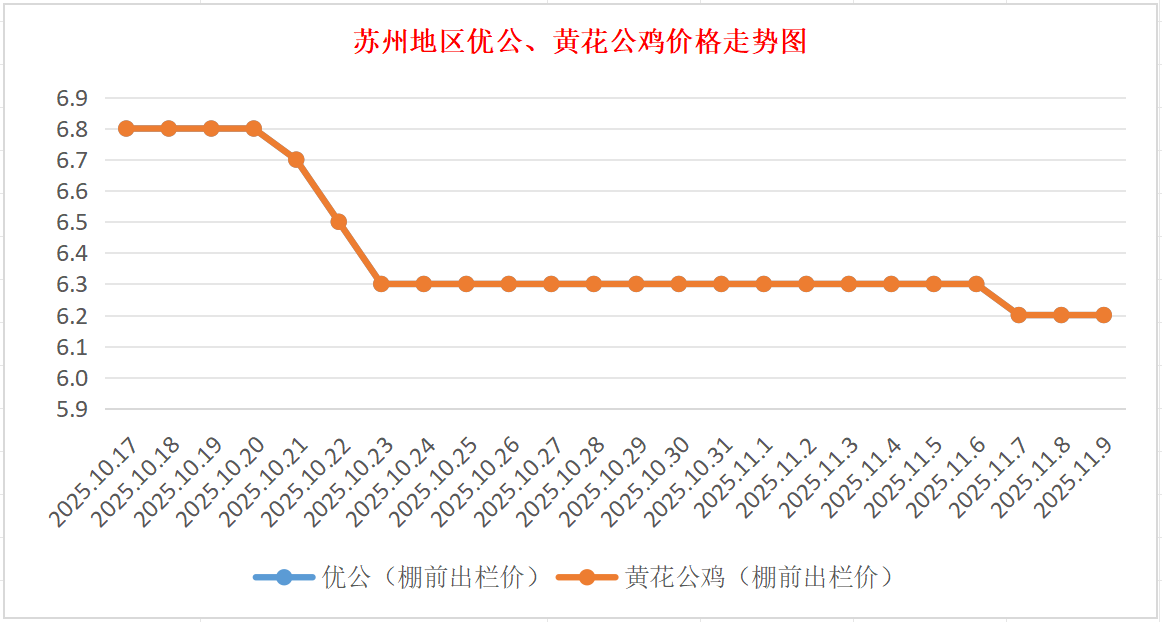 苏州地区优公、黄花公鸡价格走势图(来源:鸡病专业网)