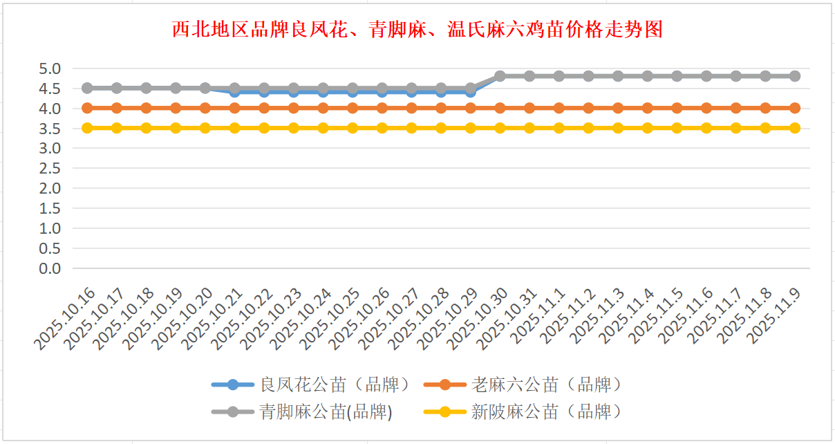 品牌新陂麻:价格稳定,到户价公苗4.50元/羽,稳。