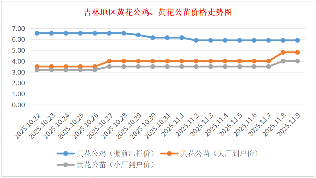 11月9日吉林黄花公鸡、鸡苗价格行情