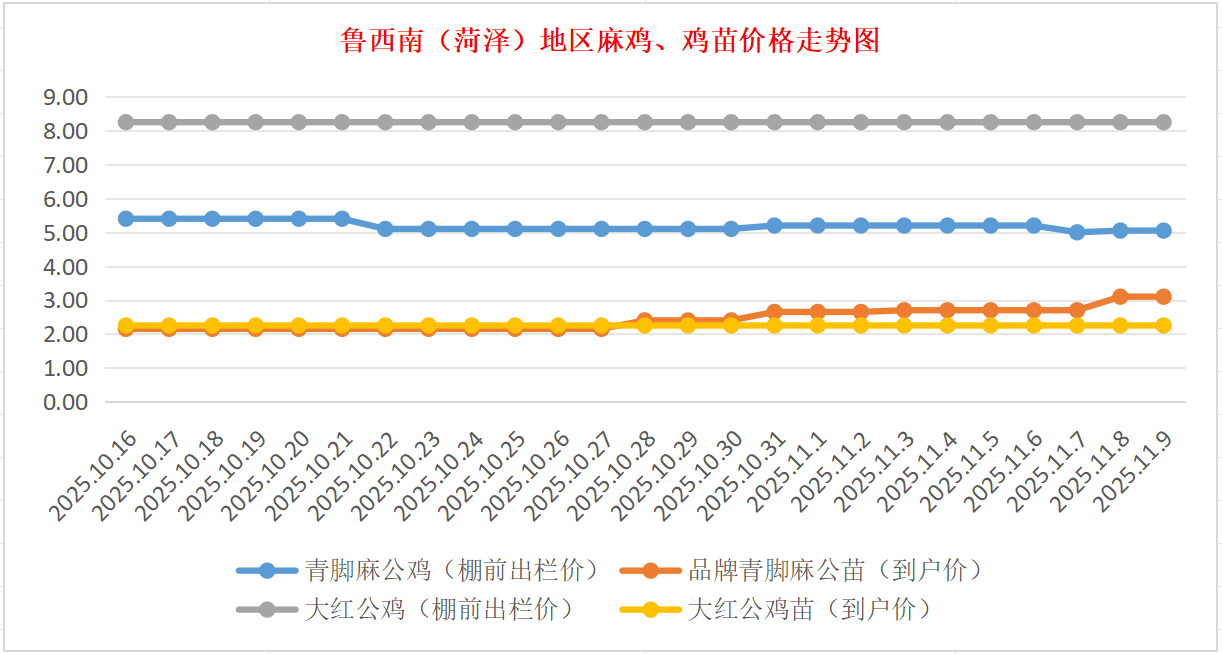 菏泽地区麻鸡、鸡苗价格走势图(来源:鸡病专业网)