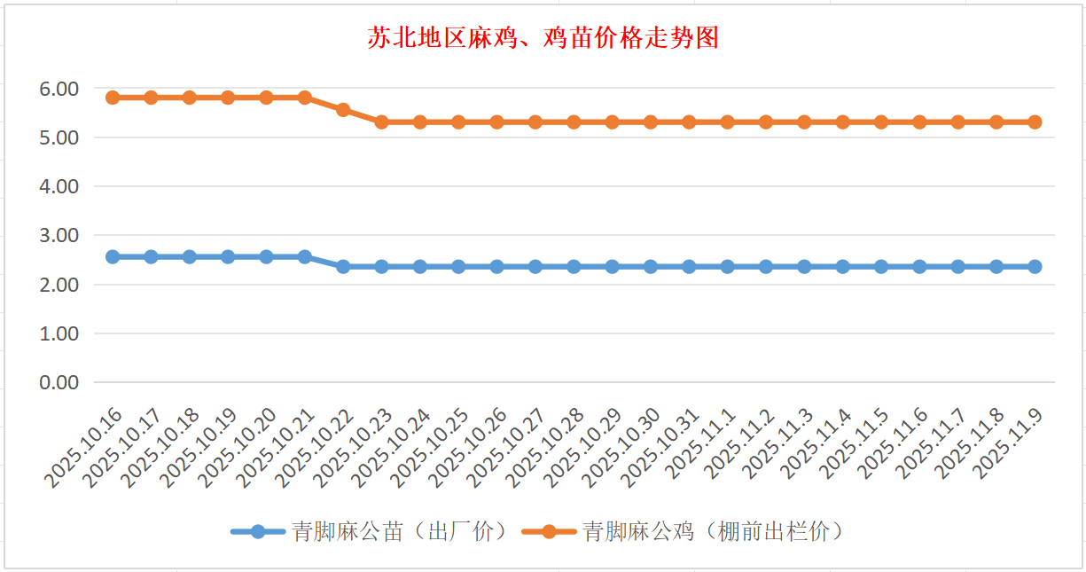 苏北地区麻鸡、鸡苗价格走势图(图源:鸡病专业网)