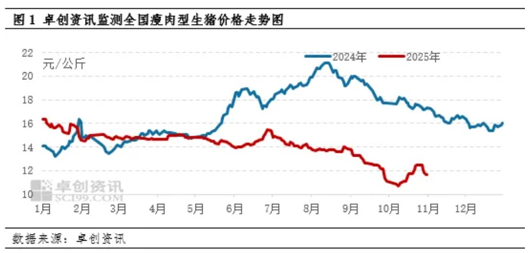 进入11月初,国内生猪市场延续惯性下降的走势,虽然,月初,受集团猪企出栏计划减少,规模猪企出栏压力减轻,部分头部猪企略有缩量现象!但是,由于市场情绪减弱,看涨信心下降,猪价延续滑坡下跌的走势,外三元标猪报价跌至11.92元/公斤!
