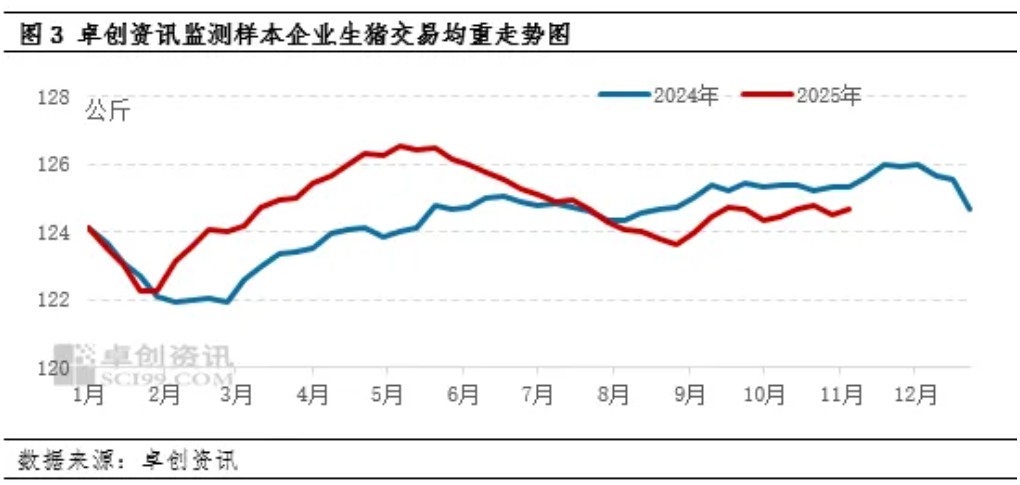 另一方面,立冬节气到来,新一轮冷空气影响逐步显现,受节日因素影响,居民肉类需求改善,下游白条购销热度略有回升!且,受南方腌腊周期临近,部分地区,二次育肥仍有少量逢低入场的操作,市场情绪略有转强!