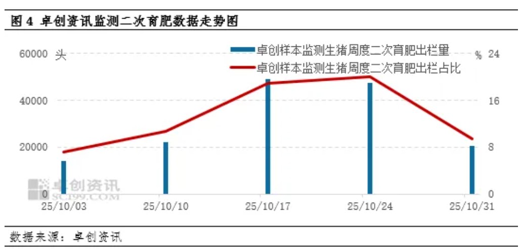 叠加,在游资方面,此前,受标猪价格降至5.5元/斤,补栏标猪性价比大幅提升,受标肥价差扩大至0.8元/公斤左右,二育积极性高涨!但是,10月末至11月,由于标猪涨价以及养殖端压栏情绪升温,二育对于中大猪前景看涨信心减弱,市场观望意愿偏强,主流二育缺乏进一步入场的操作,市场需求承接明显不足!