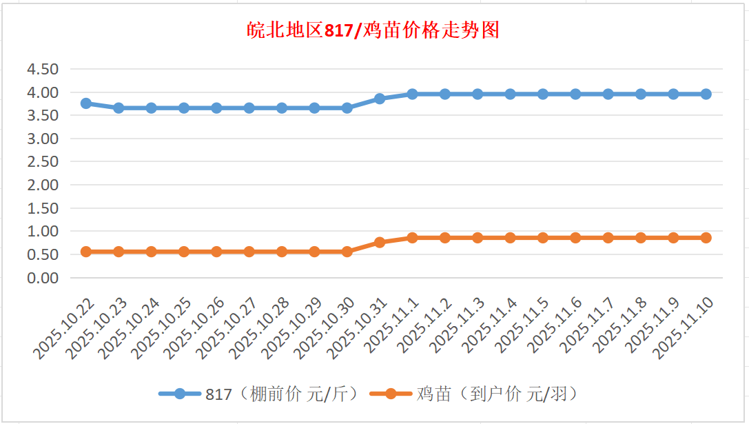 鸡病专业网独家信息:2025年11月10日皖北地区817-麻鸡行情最新走势