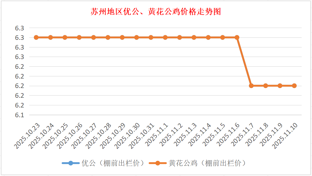 苏州地区优公、黄花公鸡价格走势图(来源:鸡病专业网)