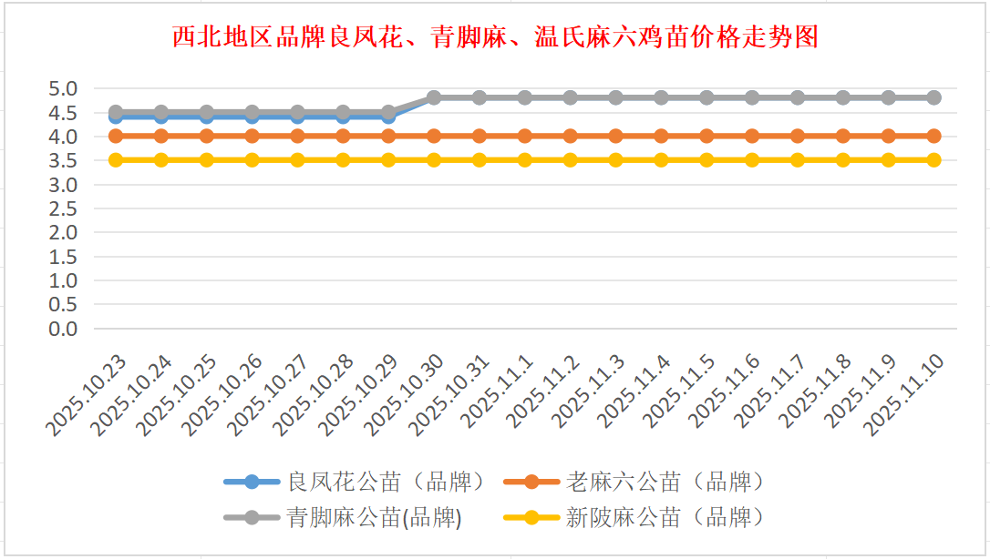 西北地区麻鸡苗价格走势图(来源:鸡病专业网)