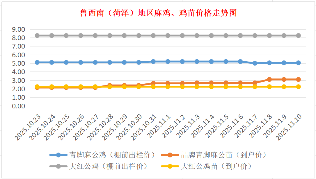 菏泽地区麻鸡、鸡苗价格走势图(来源:鸡病专业网)