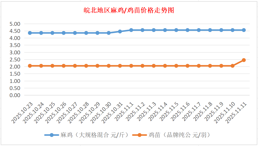 鸡病专业网独家信息:2025年11月11日皖北地区817-麻鸡行情最新走势