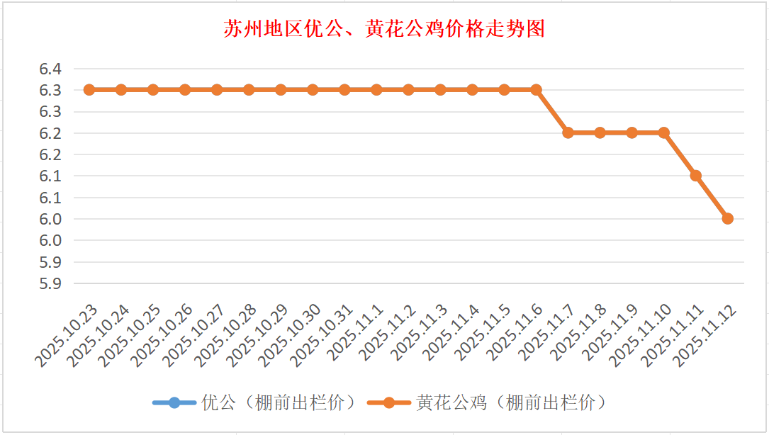苏州地区优公、黄花公鸡价格走势图(来源:鸡病专业网)