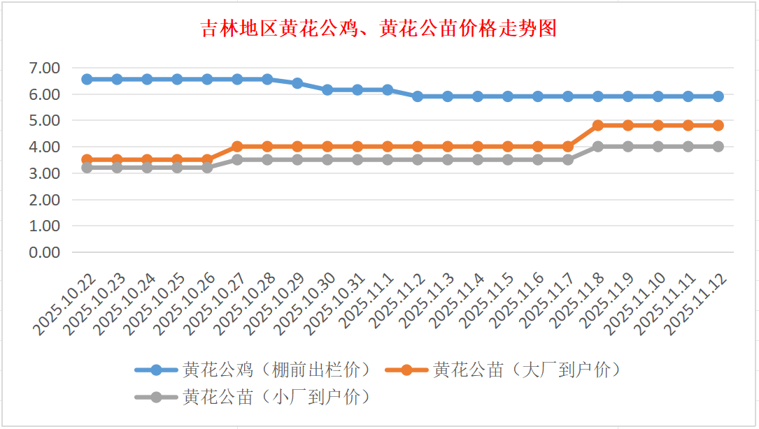11月12日吉林黄花公鸡、鸡苗价格行情