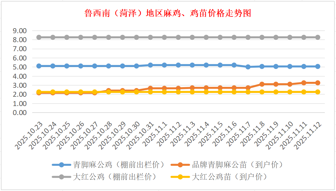 菏泽地区麻鸡、鸡苗价格走势图(来源:鸡病专业网)