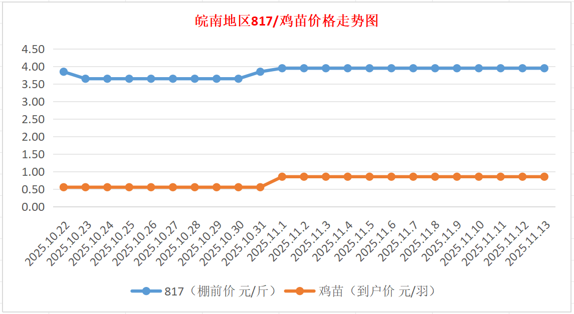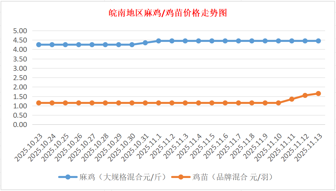 鸡病专业网独家信息:2025年11月13日皖南地区817-麻鸡行情最新走势