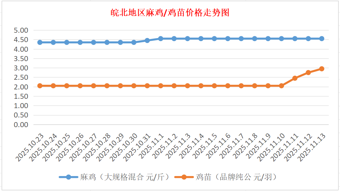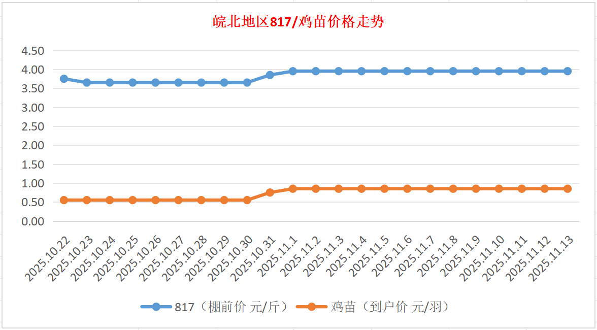 鸡病专业网独家信息:2025年11月13日皖北地区817-麻鸡行情最新走势