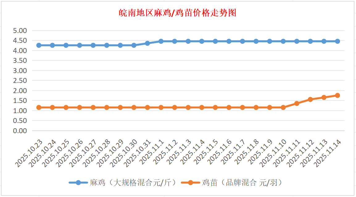 鸡病专业网独家信息:2025年11月14日皖南地区817-麻鸡行情最新走势