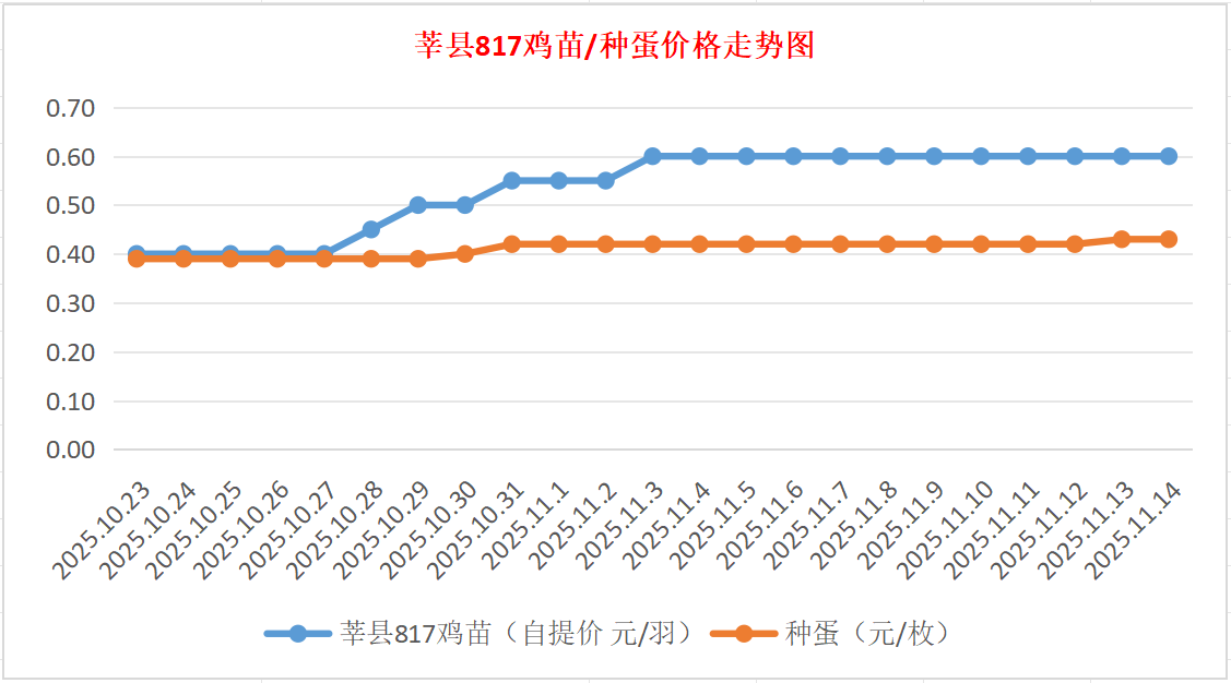 种蛋:昨日种蛋0.42-0.43元/枚。