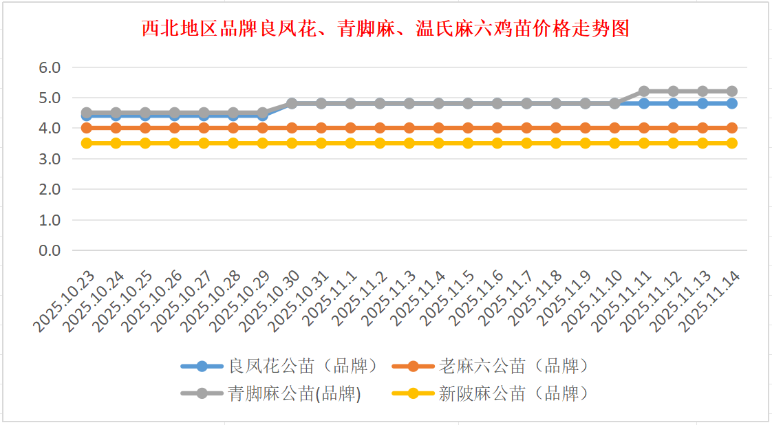 西北地区麻鸡苗价格走势图(来源:鸡病专业网)