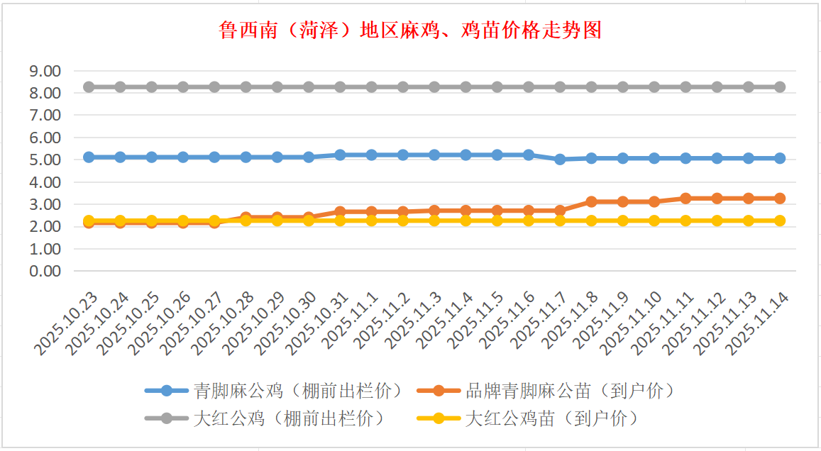 菏泽地区麻鸡、鸡苗价格走势图(来源:鸡病专业网)