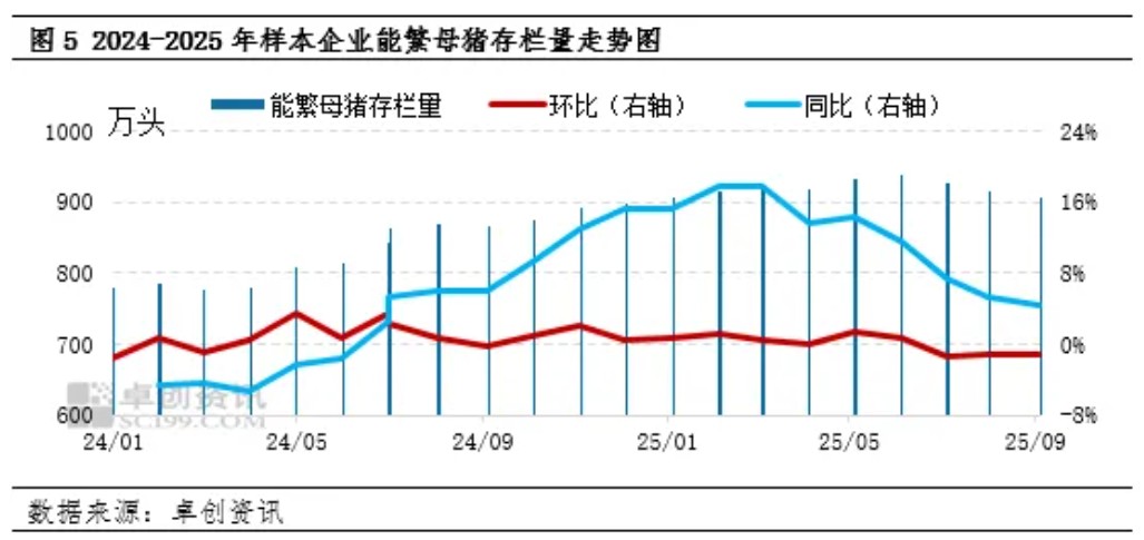 然而,随着天气转凉,生猪育肥食欲提升,猪源体重增速加快,现阶段下,养殖端出栏缓慢,看涨后市下,部分散户以及集团猪企有压栏增重的操作,适重中大猪存栏水平增加,这也加剧了后市产能过剩的压力!