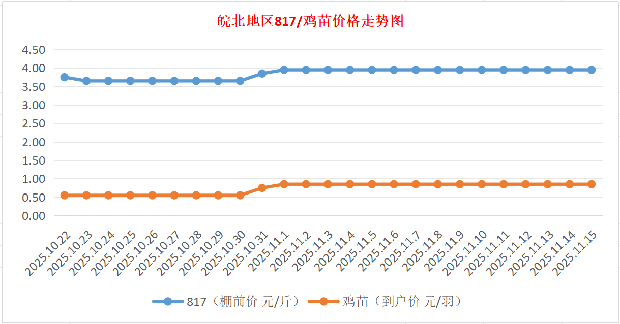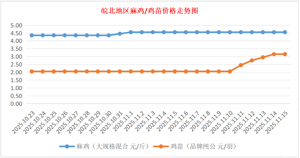鸡病专业网独家信息:2025年11月15日皖北地区817-麻鸡行情最新走势