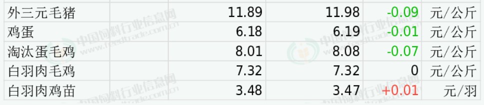 全国淘汰蛋毛鸡均价下跌。受养殖端蛋毛鸡淘汰出栏量止增转下降、居民禽肉消费需求继续改善、出栏大猪价格总体偏强等因素的综合影响,预计11月上旬期间大多数时候淘汰蛋毛鸡出场交易价格总体偏弱震荡调整走势为主的可能性更大。今日山东地区淘汰蛋毛鸡均价8.37元/公斤,与昨日价格持平;江苏地区淘汰蛋毛鸡均价9.00元/公斤,与昨日价格持平;辽宁地区淘汰蛋毛鸡均价8.40元/公斤,较昨日价格下跌0.20。
