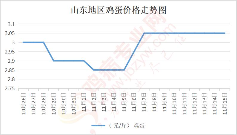 鸡病专业网消息:11月15日,山东地区莱阳鸡蛋3.1元/斤,稳;青岛鸡蛋3.1元/斤,稳;诸城鸡蛋3.1元/斤,稳;安丘鸡蛋3元/斤,稳;昌乐鸡蛋3元/斤,稳;寿光鸡蛋3元/斤,稳;昌邑鸡蛋3元/斤,稳;高密鸡蛋3.1元/斤,稳;青州鸡蛋3元/斤,稳;临朐鸡蛋3元/斤,稳;莱州鸡蛋3.1元/斤,稳;威海鸡蛋3.1元/斤,稳;临沭鸡蛋3元/斤,稳;沂水鸡蛋3元/斤,稳;沂南鸡蛋3元/斤,稳;莒南鸡蛋3元/斤,稳;兰陵县鸡蛋3元/斤,稳;日照鸡蛋3元/斤,稳;莒县鸡蛋3元/斤,稳;日照辛萁商贸鸡蛋3元/斤,稳;泗水鸡蛋价格87元/30斤,稳;济宁、汶上鸡蛋价格87元/30斤,稳;梁山、东平红蛋价格87元/30斤,稳;枣庄滕州地区鸡蛋混码主流到户89元/30斤,稳;泰安地区新泰鸡蛋价格87元/30斤,稳;菏泽地区曹县主流到户87元/30斤,稳;成武鸡蛋价格87元/30斤,稳;单县到户87元/30斤,稳;聊城莘县87元/30斤,稳。
