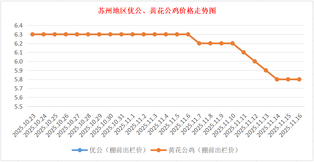 苏州地区优公、黄花公鸡价格走势图(来源:鸡病专业网)