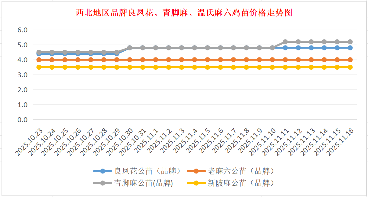 西北地区麻鸡苗价格走势图(来源:鸡病专业网)