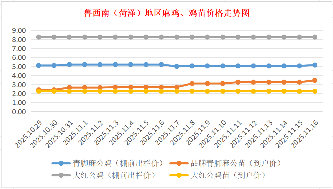 菏泽地区麻鸡、鸡苗价格走势图(来源:鸡病专业网)