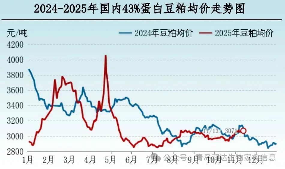 本周全国43%蛋白豆粕周度均价3062元/吨,与上周均价相比,上涨3元/吨,涨幅0.1%。