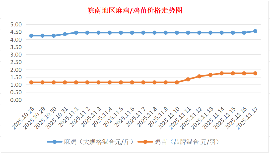 鸡病专业网独家信息:2025年11月17日皖南地区817-麻鸡行情最新走势