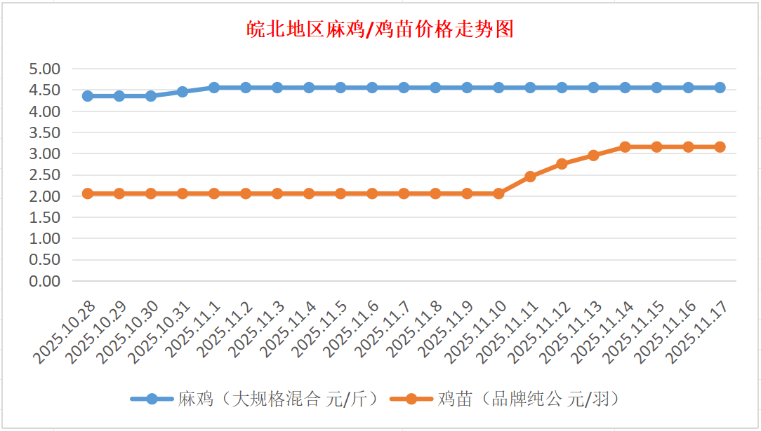 鸡病专业网独家信息:2025年11月17日皖北地区817-麻鸡行情最新走势