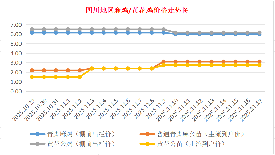 品牌青脚麻公苗:价格稳定,主流到户价2.60-3.80元/羽,稳。