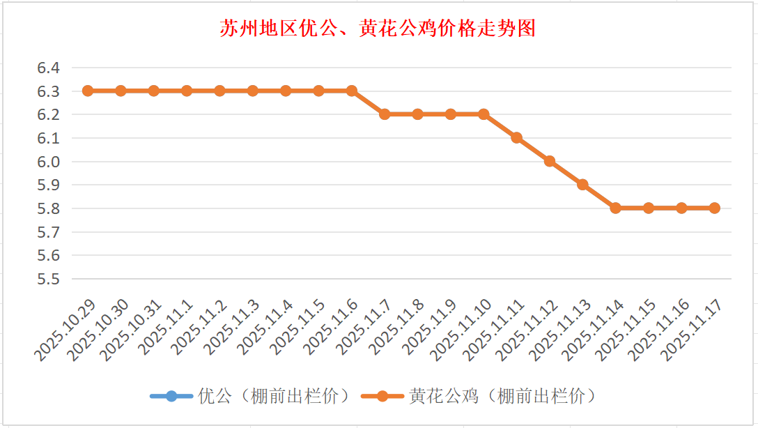 苏州地区优公、黄花公鸡价格走势图(来源:鸡病专业网)