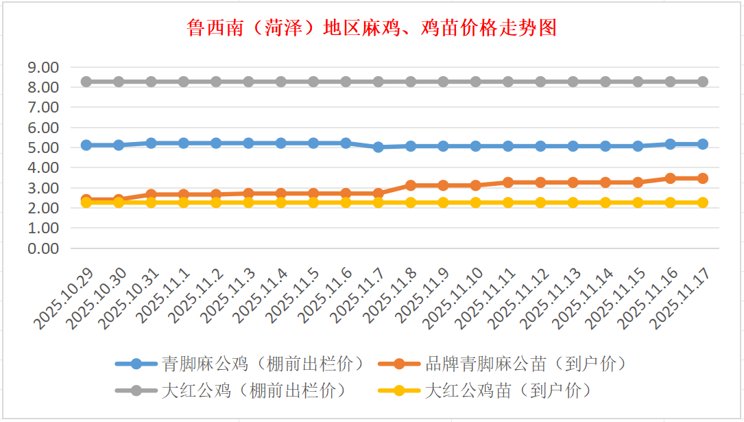 菏泽地区麻鸡、鸡苗价格走势图(来源:鸡病专业网)