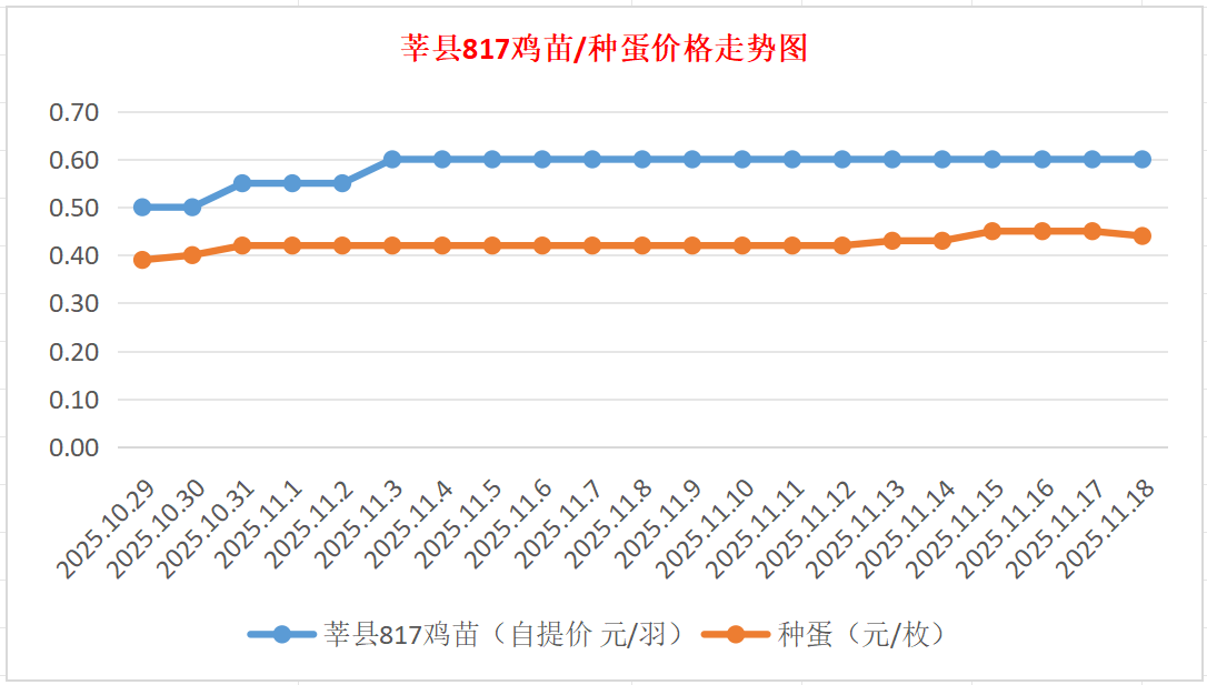 种蛋:昨日种蛋0.43-0.44元/枚。