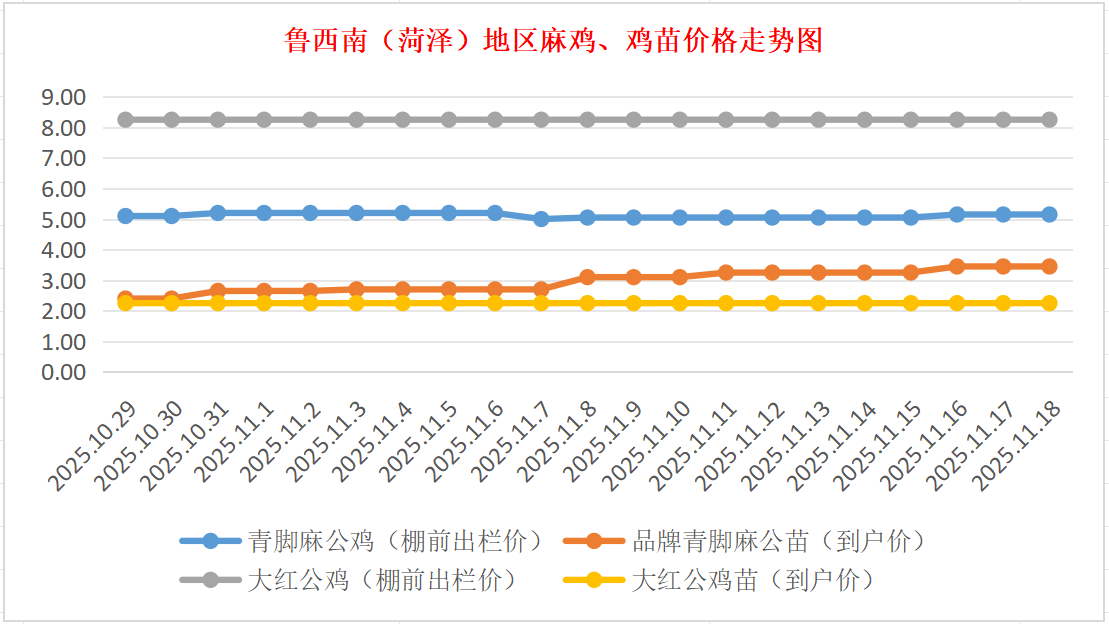 菏泽地区麻鸡、鸡苗价格走势图(来源:鸡病专业网)