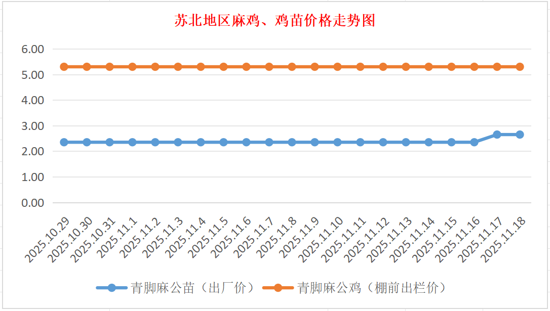 苏北地区麻鸡、鸡苗价格走势图(图源:鸡病专业网)