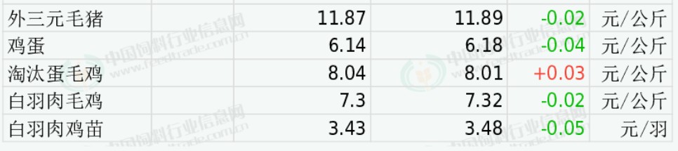 今日鸡蛋价格稳中偏弱。随着气温继续下降北方蛋鸡主养区经产蛋鸡将进入冬季产蛋淡季,南方地区经产蛋禽也将逐步进入冬季产蛋淡季初期阶段,商品禽蛋月度产供总量环比将止增转下降,供应季节性偏紧张矛盾将逐步凸显。消费端居民禽蛋消费需求总量总体将继续小幅增长。预计11月期间大多数商品鸡蛋出场交易价格先弱后强总体由弱转强震荡走势为主的几率更高。今日主产区山东鸡蛋均价5.92元/公斤,较昨日价格下跌0.05;河北鸡蛋均价5.56元/公斤,较昨日价格下跌0.03;广东鸡蛋均价6.93元/公斤,与昨日价格持平;北京鸡蛋均价6.00元/公斤,与昨日价格持平。
