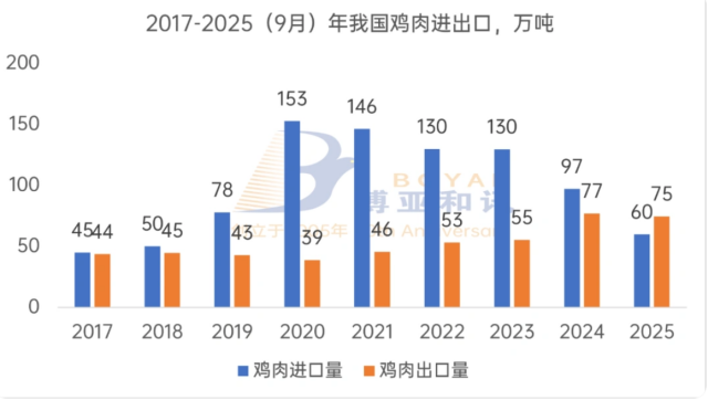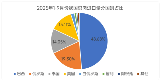 2025年9月鸡肉进口量创6年单月新低,俄罗斯、泰国进口量大增