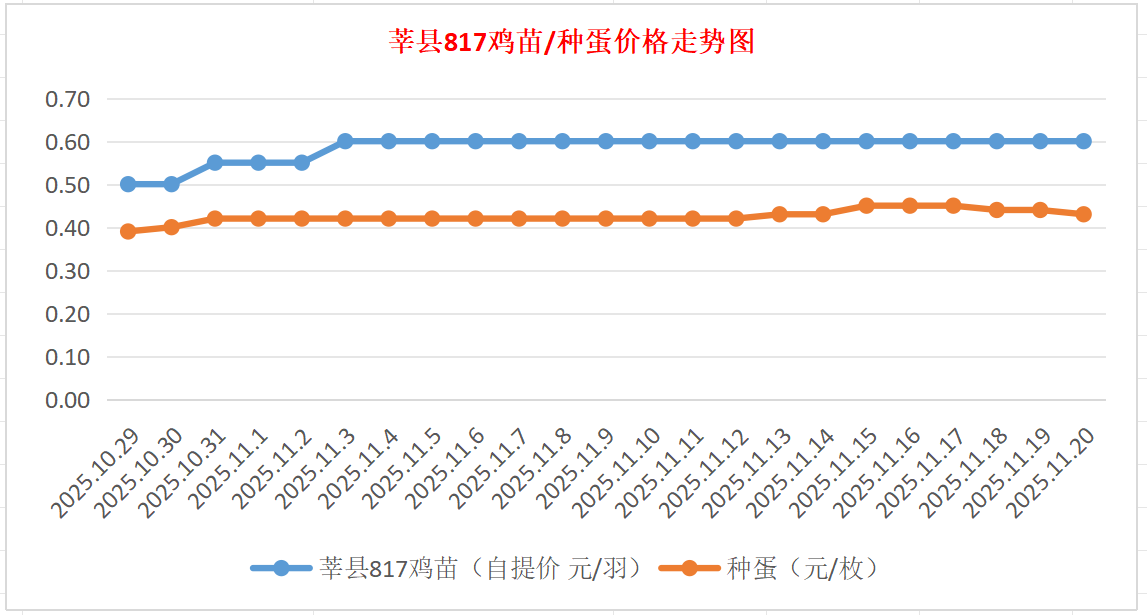 种蛋:昨日种蛋0.42-0.43元/枚。
