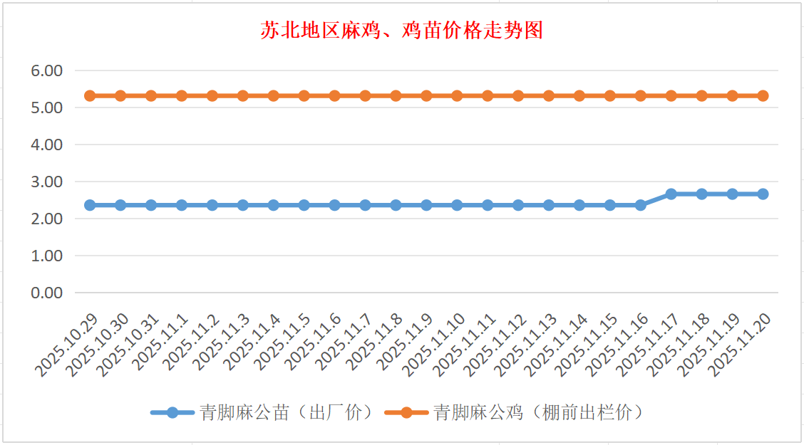 苏北地区麻鸡、鸡苗价格走势图(图源:鸡病专业网)