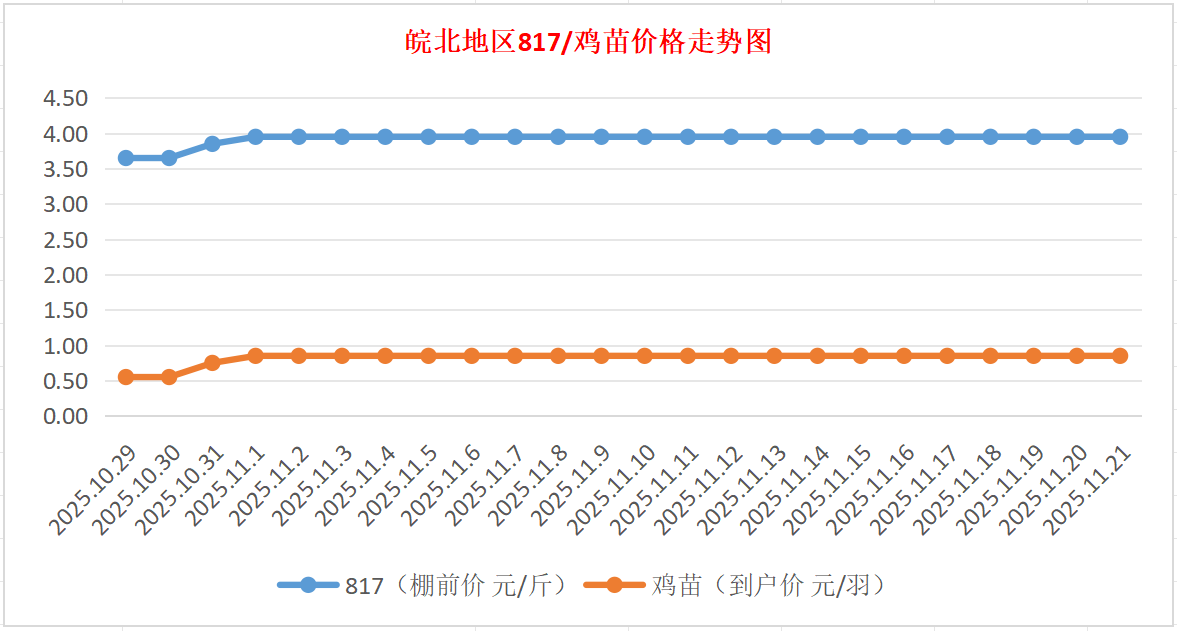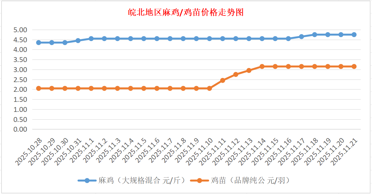 鸡病专业网独家信息:2025年11月21日皖北地区817-麻鸡行情最新走势