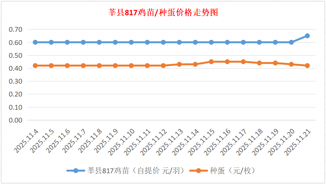种蛋:昨日种蛋0.41-0.42元/枚。