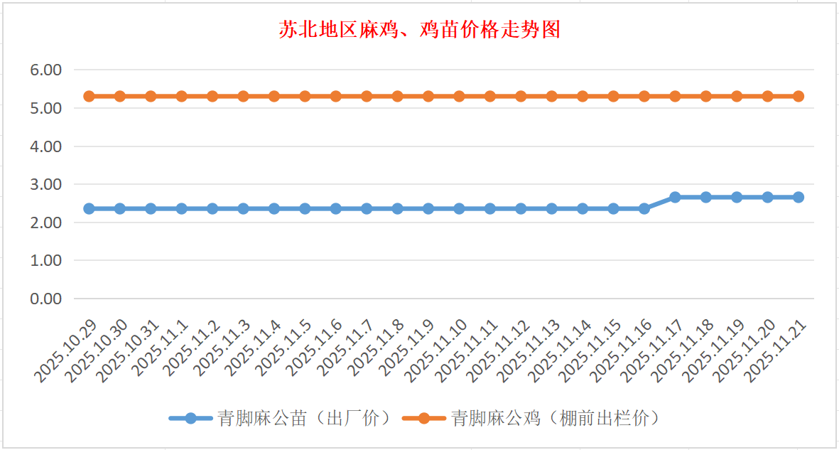 苏北地区麻鸡、鸡苗价格走势图(图源:鸡病专业网)