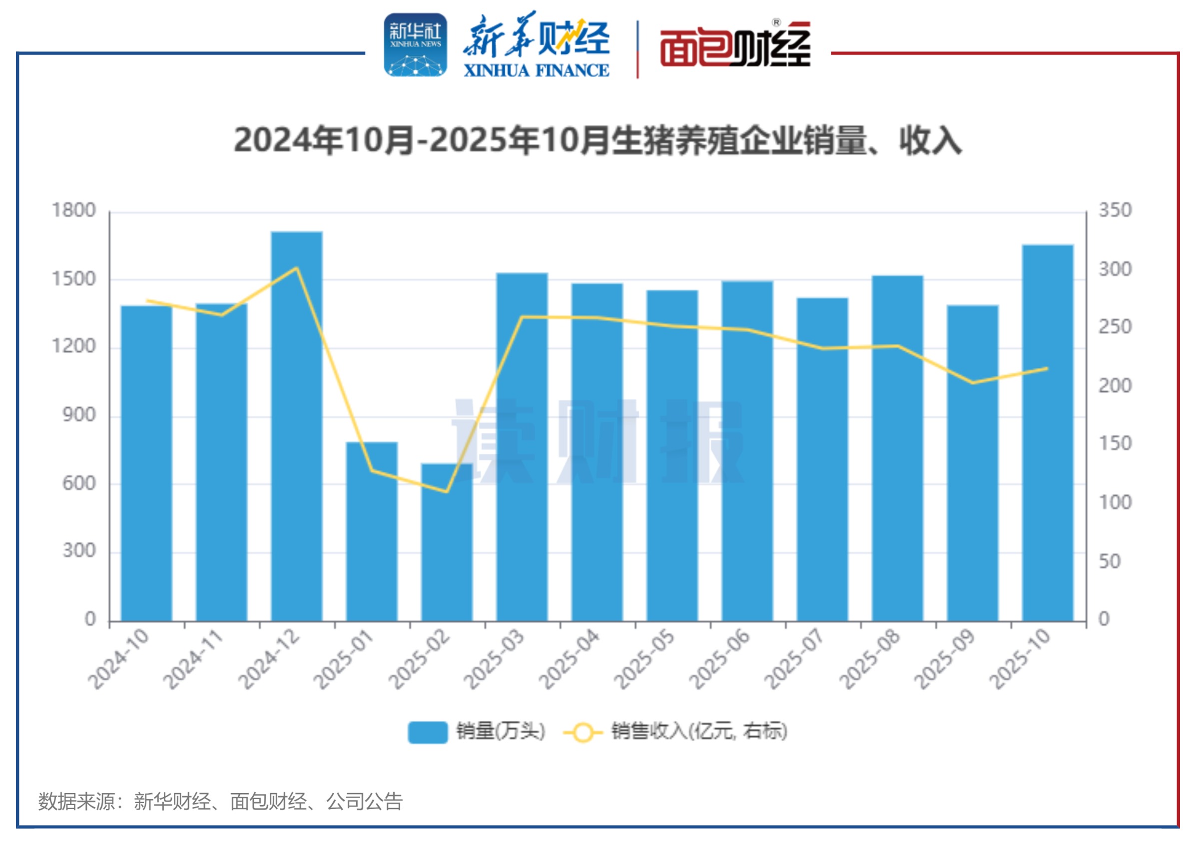 图2:2024年10月-2025年10月生猪养殖企业销量、收入